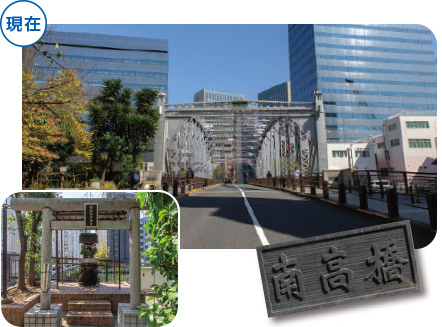元禄期の創架とみられ、その後何度も架け替え。南詰東側に永久稲荷神社が、そばに永久河岸(稲荷河岸)がありました。