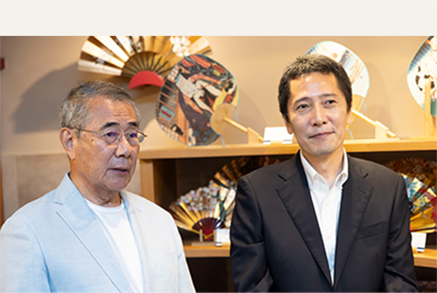 - 社長に就任したのは令和7(2025)年8月です。400年以上の暖簾の重みを徐々に実感しているところですが、古き良き伝統を守り抜くとともに、新しいことにもチャレンジしていきたいと考えています。扇子づくりの本場京都でも職人は不足し、材料の入手も困難な状況になってきています。そうした伝統工芸に共通する課題に向き合いつつ、インバウンドも戻り、扇子や団扇は海外の方にも評判が良いので、これからは海外に販路を拡大していきたいですね。また、若い方々のニーズに合わせた扇子や団扇も提案していきたいと考えています。